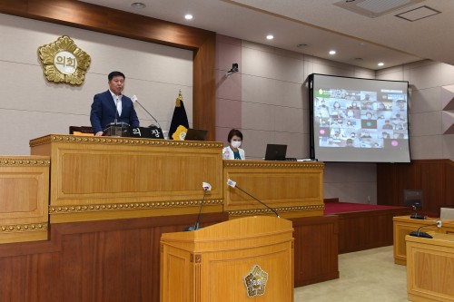 Á¤´ö¿µ ¾çÁÖ½ÃÀÇȸ ÀÇÀåÀÌ Äڷγª ¹ÙÀÌ·¯½º °¨¿°Áõ È®»ê Â÷´ÜÀ» À§ÇØ º»È¸ÀÇ Âü¼® ÀοøÀ» ÃÖ¼ÒÈÇÏ°í ºñ´ë¸é È»óȸÀÇ·Î Á¦321ȸ ÀÓ½Ãȸ Á¦1Â÷ º»È¸ÀǸ¦ ÁøÇàÇϰí ÀÖ´Ù.