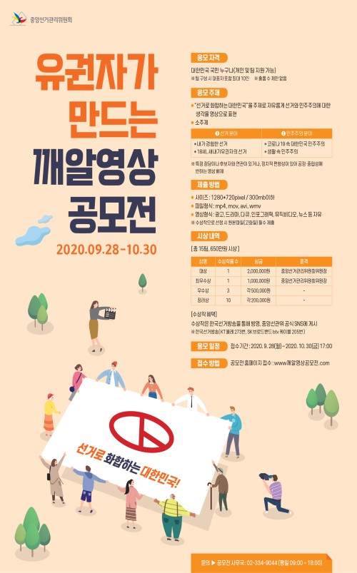 ‘¼±°Å·Î ÈÇÕÇÏ´Â ´ëÇѹα¹’À» ÁÖÁ¦·Î ¡ã¼±°Å(³»°¡ °æÇèÇÑ ¼±°Å, 18¼¼ »õ³»±â À¯±ÇÀÚÀÇ ¼±°Å) ¡ã¹ÎÁÖÁÖÀÇ(Äڷγª19 ¼Ó ´ëÇѹα¹ ¹ÎÁÖÁÖÀÇ, »ýȰ ¼Ó ¹ÎÁÖÁÖÀÇ) ºÐ¾ß¿¡ ´©±¸³ª ÀÀ¸ðÇÒ ¼ö ÀÖÀ¸¸ç, ȨÆäÀÌÁö(www.±ú¾Ë¿µ»ó°ø¸ðÀü.com)¸¦ ÅëÇØ 9¿ù28ÀϺÎÅÍ 10¿ù30ÀÏ 17½Ã±îÁö Á¢¼öÇÑ´Ù.