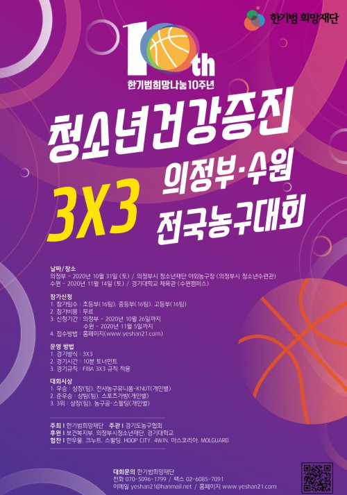 Çѱâ¹üÈñ¸ÁÀç´ÜÀº ‘û¼Ò³â °Ç°ÁõÁø 3X3 Àü±¹³ó±¸´ëȸ’¸¦ ¿À´Â 10¿ù31ÀÏ ÀÇÁ¤ºÎ û¼Ò³âÀç´Ü ¾ß¿Ü³ó±¸Àå, 11¿ù 14ÀÏ ¼ö¿ø °æ±â´ëÇб³ üÀ°°ü¿¡¼ °³ÃÖÇÑ´Ù.