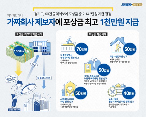 °æ±âµµ°¡ ºÒ¹ýÇϵµ±ÞÀ» ÀúÁö¸£´Â ÆäÀÌÆÛÄÄÆÛ´Ï¸¦ ½Å°íÇÑ Á¦º¸ÀÚ¿¡°Ô Æ÷»ó±Ý 1,000¸¸¿øÀ» Áö±ÞÇÑ´Ù. ±×µ¿¾È °æ±âµµ °øÀÍÁ¦º¸ÀÚ¿¡°Ô Áö±ÞµÈ Æ÷»ó±ÝÀ¸·Î´Â ÃÖ°í¾×ÀÌ´Ù.