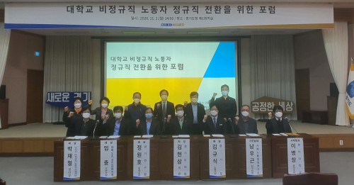 ´ëÇÐ ³» ºñÁ¤±ÔÁ÷ ¹®Á¦ ÇØ°áÀ» À§ÇØ º¸´Ù ³ôÀº Â÷¿øÀÇ Á¤Ã¥Àû °ü½É°ú Áö¿øÀÌ ÇÊ¿äÇÏ´Ù´Â ¸ñ¼Ò¸®°¡ 2ÀÏ ¿ÀÈÄ °æ±âµµÃ»¿¡¼ ¿¸° ‘´ëÇб³ ºñÁ¤±ÔÁ÷ ³ëµ¿ÀÚ Á¤±ÔÁ÷ ÀüȯÀ» À§ÇÑ Æ÷·³’¿¡¼ ³ª¿Ô´Ù.