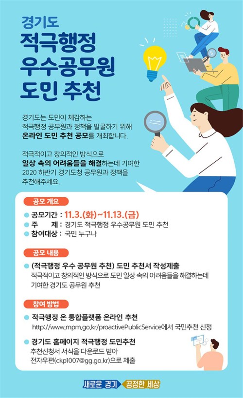 °æ±âµµ Àû±ØÇàÁ¤ ¿ì¼ö°ø¹«¿ø ÃßõÀº °æ±âµµ ȨÆäÀÌÁö(¼ÒÅëÂü¿©>°æ±âµµ¹Î Âü¿©> Àû±ØÇàÁ¤)¿¡¼ Àû±ØÇàÁ¤ µµ¹ÎÃßõ ¼½ÄÀ» ³»·Á ¹Þ¾Æ ÀÛ¼º ÈÄ µµ ±ÔÁ¦°³Çõ´ã´ç°ü ÇàÁ¤Çõ½ÅÆÀ ´ã´çÀÚ À̸ÞÀÏ(ckp1007@gg.go.kr)·Î Á¦ÃâÇÏ¸é µÈ´Ù. ÀλçÇõ½Åó°¡ ¿î¿µÇÏ´Â ‘Àû±ØÇàÁ¤ ¿Â ȨÆäÀÌÁö’¿¡¼µµ °¡´ÉÇÏ´Ù.