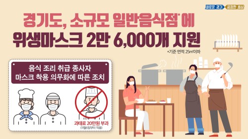 11¿ù6ÀϺÎÅÍ ½ÃÇàµÇ´Â ½ÄǰÀ§»ý¾÷¼Ò Á¾»çÀÚµéÀÇ ¸¶½ºÅ© Âø¿ë Àǹ«È¿¡ µû¶ó °æ±âµµ°¡ Äڷγª19·Î ¾î·Á¿òÀ» °Þ°í ÀÖ´Â ¸éÀû 25§³ ÀÌÇÏ ¿µ¼¼·¼Ò±Ô¸ð ÀϹÝÀ½½ÄÁ¡¿¡ À§»ý¸¶½ºÅ© 2¸¸6,000°³¸¦ Áö¿øÇÑ´Ù.