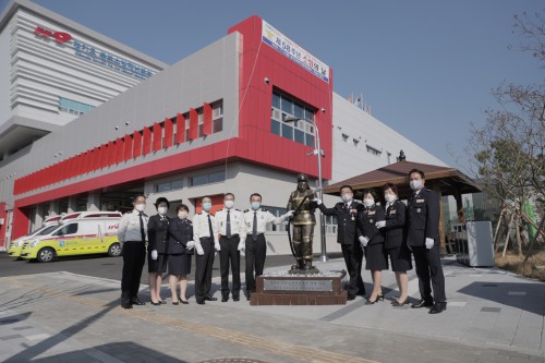 À̹ø¿¡ ¼³Ä¡µÈ Á¶Çü¹°Àº °üâÀ» Àâ°í ÈÀ縦 Áø¾ÐÁßÀÎ ¼Ò¹æ´ë¿øÀ» Çü»óÈÇÑ ÀÛǰÀ¸·Î, °æ±âºÏºÎÁö¿ª ¼Ò¹æ¾ÈÀüÀÇ ¼±ºÀ¿¡ ¼°Ú´Ù´Â Àǹ̸¦ ´ã°í ÀÖ´Ù.