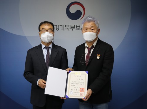 °æ±âºÏºÎº¸ÈÆÁöû(ÁöûÀå ȲÈÄ¿¬)Àº 11¿ù16ÀÏ ÁöûÀå½Ç¿¡¼ ¼ø±¹¼±¿ÀÇ ³¯ °è±â·Î Æ÷»óÀÌ ¼ö¿©µÈ ͺ ±ÇÈ£±â Áö»çÀÇ ¼ÕÀÚ ±Ç¿ì´ë¾¾¿¡°Ô Æ÷»óÀ» Àü¼öÇÏ¿´´Ù.