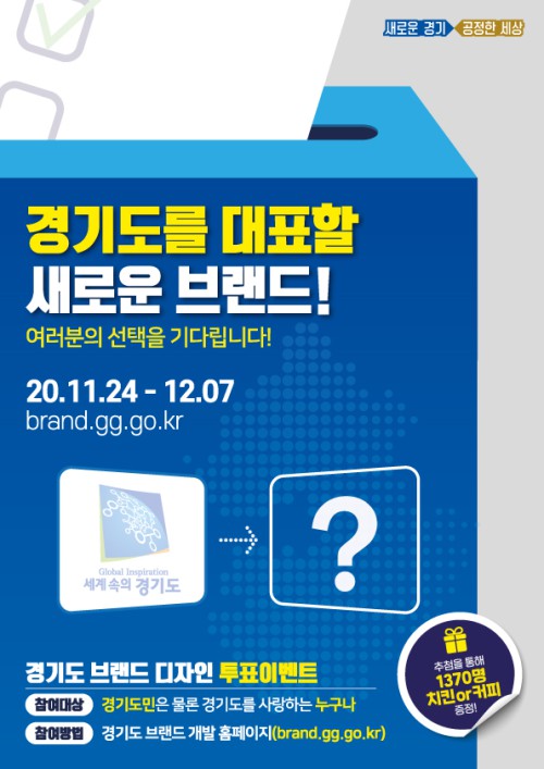 ÅõÇ¥´Â 24ÀϺÎÅÍ ´ÙÀ½´Þ 7ÀϱîÁö ‘°æ±âµµ ºê·£µå°³¹ß ȨÆäÀÌÁö’ (brand.gg.go.kr)¸¦ ÅëÇØ ÁøÇàµÇ¸ç, °æ±âµµ¹ÎÀº ¹°·Ð °æ±âµµ¿¡ °ü½É ÀÖ´Â ´©±¸³ª Âü¿©ÇÒ ¼ö ÀÖ´Ù. 1,370¸¸ °æ±âµµ¹Î°ú ÇÔ²² ÇÑ´Ù´Â ¶æÀ» ´ã¾Æ, Ãß÷À» ÅëÇØ Âü¿©ÀÚ 1,370¸í¿¡°Ô ġŲ ¶Ç´Â Ä¿ÇÇ ±âÇÁƼÄÜÀ» Áö±ÞÇÑ´Ù.