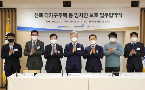 ÀÌÀç¸í °æ±âµµÁö»ç¿Í ±è¼ø±¸ Çѱ¹°¨Á¤Æò°¡»çÇùȸÀå, ¹Ú¿ëÇö Çѱ¹°øÀÎÁß°³»çÇùȸÀåÀº 17ÀÏ °æ±âµµÃ»¿¡¼ ÀÌ·± ³»¿ëÀ» ´ãÀº ‘½ÅÃà ´Ù°¡±¸ÁÖÅà µî ÀÓÂ÷ÀÎ º¸È£ ¾÷¹«Çù¾à’À» ü°áÇß´Ù. Çù¾à½Ä¿¡´Â °æ±âµµÀÇȸ ¾çö¹Î ÀÇ¿øµµ Âü¼®Çß´Ù.