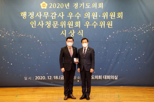 °æ±âµµÀÇȸ °Ç¼³±³ÅëÀ§¿øÈ¸ ±ÇÀçÇü ºÎÀ§¿øÀå(´õºÒ¾î¹ÎÁÖ´ç, ÀÇÁ¤ºÎ3)Àº °æ±âµµÀÇȸ°¡ ¼±Á¤ÇÏ´Â 2020³âµµ °æ±âµµ ÇàÁ¤»ç¹«°¨»ç ¿ì¼öÀÇ¿ø¿¡ ¼±Á¤µÆ´Ù.