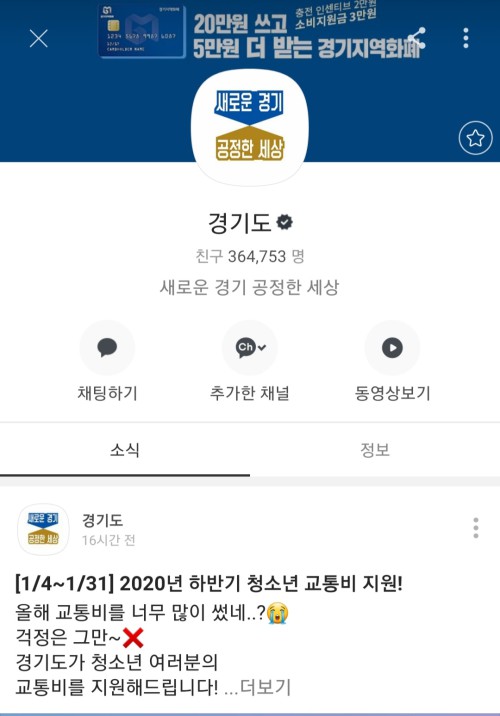 °æ±âµµ īī¿ÀÅå ¼ºñ½º´Â ‘īī¿ÀÅå Ç÷¯½º Ä£±¸’·Î µî·ÏÇÏ¸é ¹Ù·Î »ç¿ë °¡´ÉÇÏ´Ù. īī¿ÀÅå Ä£±¸ ¸ñ·Ï ȸéÀÇ °Ë»öâ¿¡¼ ‘°æ±âµµ’¸¦ °Ë»öÇØ¼ ä³Î Ãß°¡ÇÏ¸é µÇ¸ç, ä³Î ±¸µ¶À» ½ÅûÇÏ¸é °æ±âµµÀÇ ÁÖ¿ä Á¤Ã¥ È«º¸ÀÚ·á ¹× °æ±âµµÀÇ »õ·Î¿î Á¤Ã¥, ÃֽŠÇöȲÀÚ·á µîÀ» ¹Þ¾Æº¼ ¼ö ÀÖ´Ù.