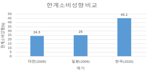 ºÐ¼® °á°ú, Àç³Áö¿ø±ÝÀÇ ´Ü¼ø °è»ê ÇѰè¼Òºñ¼ºÇâÀº 29.1%·Î ³ªÅ¸³µ´Ù. ÀÌ´Â Àç³Áö¿ø±ÝÀ» ÅëÇÑ ¼Òºñ¾×¿¡¼ ±âÁ¸ ¼Òºñ¸¦ ´ëüÇÑ ºñÁßÀ» Á¦¿ÜÇÑ °ÍÀ¸·Î, º» ¿¬±¸¿¡¼´Â ‘Àç³Áö¿ø±ÝÀ» ¹ÞÁö ¾Ê¾Ò´õ¶óµµ ¾îÂ÷ÇÇ ÁöÃâÇßÀ» ±Ý¾×’À» Á÷Á¢ ¼³¹®ÇÏ¿© °á°ú¸¦ µµÃâÇß´Ù. ÀÌ´Â ¿Ü±¹ À¯»ç »ç·ÊÀÎ 2009³â ´ë¸¸(24.3%)°ú ÀϺ»(25.0%)º¸´Ù 4~5%p°¡·® ³ô°Ô ³ªÅ¸³ °ÍÀÌ´Ù.