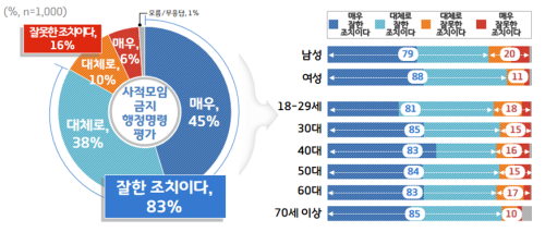 °æ±âµµ´Â Áö³ 16ÀÏ µµ¹Î 1,000¸íÀ» ´ë»óÀ¸·Î Äڷγª19 °ü·Ã ¿©·ÐÁ¶»ç¸¦ ½Ç½ÃÇÑ °á°ú, °æ±âµµ°¡ ¼±Á¦ÀûÀ¸·Î Á¦¾ÈÇØ Àü±¹À¸·Î È®´ëµÈ ‘5ÀÎÀÌ»ó »çÀû¸ðÀÓ ±ÝÁö’¿¡ ´ëÇØ ‘ÀßÇÑ Á¶Ä¡´Ù’¶ó´Â ÀÀ´äÀÌ 83%·Î ³ªÅ¸³µ´Ù°í 26ÀÏ ¹àÇû´Ù.