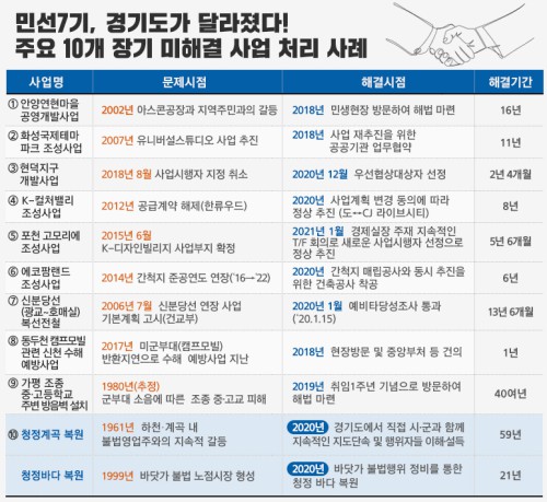 ¹Î¼± 7±â °æ±âµµ´Â ÀÌÀç¸í °æ±âµµÁö»ç ÃëÀÓ ÈÄ ¿À·§µ¿¾È ÇØ°áÀ» ¸øÇÏ´ø À̸¥¹Ù Àå±â¹ÌÇØ°á»ç¾÷µéÀ» »õ·Î¿î µ¿·ÂÀ¸·Î ÇØ°áÇϰí ÀÖ´Ù.
