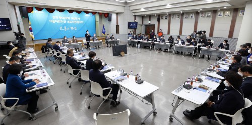 ±¤¿ªÀÇȸ ´ëÇ¥ÀÇ¿øµéÀº °æ±âµµÀÇȸ ´ëȸÀǽǿ¡¼ Àü±¹ ±³¼·´Üü ´õºÒ¾î¹ÎÁÖ´ç ´ëÇ¥ÀÇ¿øÇùÀÇȸ(‘±¤¿ªÀÇȸ±³¼·´ÜüÇùÀÇȸ’) ±¸¼º ¹× Áö¹æÀÇȸ¹ý Á¦Á¤ µîÀÇ Çö¾ÈµéÀ» À§ÇØ ¸Ó¸®¸¦ ¸Â´ò´Ù.