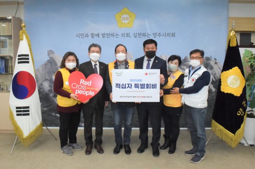 Á¤´ö¿µ ¾çÁÖ½ÃÀÇȸ ÀÇÀåÀº 9ÀÏ ¿ÀÈÄ ÀÇÀå½Ç¿¡¼ ´ëÇÑÀû½ÊÀÚ»ç °æ±âµµÁö»ç¿¡ ‘2021³â ´ëÇÑÀû½ÊÀÚ»ç Æ¯º°È¸ºñ’ Àü´Þ½ÄÀ» °¡Á³´Ù.