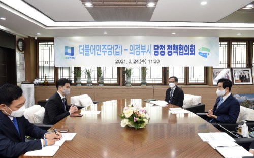 ´õºÒ¾î¹ÎÁÖ´ç ÀÇÁ¤ºÎ½Ã °© ¿À¿µÈ¯ ÀÇ¿øÀº ¿À´Ã ÀÇÁ¤ºÎ ½Ãû ½ÃÀå½Ç¿¡¼ ¿¸° ´çÁ¤ Á¤Ã¥ÇùÀÇȸ¿¡ Âü¼®Çß´Ù. ÇùÀÇȸ¿¡´Â ¿À¿µÈ¯ ±¹È¸ÀÇ¿ø°ú ¾Èº´¿ë ½ÃÀåÀ» ºñ·ÔÇÑ ´ã´ç ½Ç¹«ÁøÀÌ Âü¿©Çß´Ù.