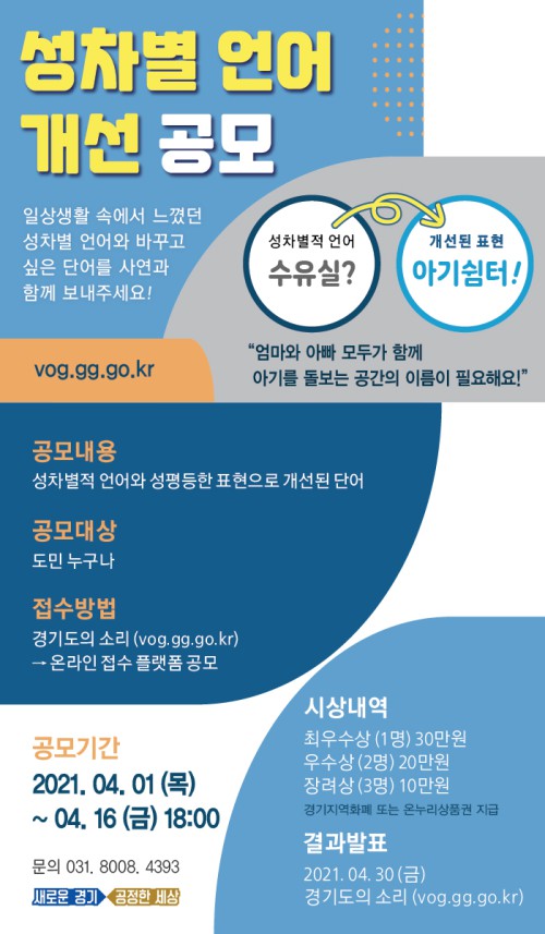 °ø¸ð¿¡ Âü¿©ÇÏ°í ½ÍÀº µµ¹Î ´©±¸³ª ‘°æ±âµµÀÇ ¼Ò¸® ȨÆäÀÌÁö(vog.gg.go.kr)’¿¡¼ 1ÀϺÎÅÍ 4¿ù 16ÀÏ ¿ÀÈÄ 6½Ã±îÁö Á¢¼ö °¡´ÉÇÏ´Ù.