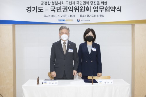 ÀÌÀç¸í °æ±âÁö»ç¿Í ÀüÇöÈñ ±¹¹Î±ÇÀÍÀ§¿øÈ¸ À§¿øÀåÀº 2ÀÏ °æ±âµµÃ»¿¡¼ ÀÌ·± ³»¿ëÀ» ´ãÀº ‘°øÁ¤ÇÑ Ã»·Å»çȸ ±¸Çö°ú ±¹¹Î±ÇÀÍ ÁõÁøÀ» À§ÇÑ ¾÷¹«Çù¾à’¿¡ ¼¸íÇß´Ù.