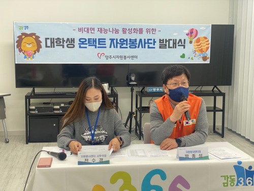 ¾çÁÖ½ÃÀÚ¿øºÀ»ç¼¾ÅÍ(¼¾ÅÍÀå ¹ÚÁ¾¼º)´Â Áö³ 14ÀÏ ‘´ëÇлý ¿ÂÅÃÆ® ÀÚ¿øºÀ»ç´Ü’ ¹ß´ë½ÄÀ» °³ÃÖÇß´Ù.