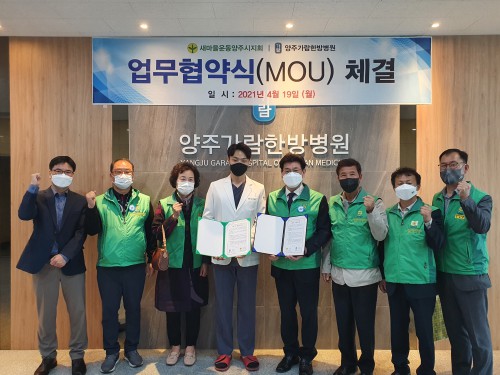 »õ¸¶À»¿îµ¿ ¾çÁÖ½ÃÁöȸ(ȸÀå ±è¿ëÃá)´Â Áö³ 19ÀÏ ¿ÁÁ¤µ¿ ¼ÒÀç ¾çÁÖ°¡¶÷Çѹ溴¿ø¿¡¼ »õ¸¶À»ÁöµµÀÚ °Ç°ÁõÁøÀ» À§ÇØ °øµ¿À¸·Î ¾÷¹«Çù¾àÀ» ü°áÇÏ¿´´Ù.