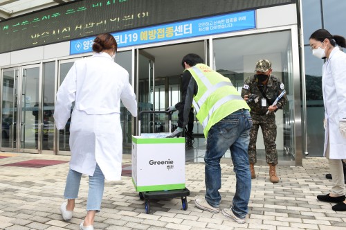 ¸¸ 75¼¼ ÀÌ»ó ¾î¸£½Å ´ë»ó Äڷγª19 ¿¹¹æÁ¢Á¾À» À§ÇÑ ÈÀÌÀÚ ¹é½ÅÀÇ ¿ì¼± °ø±Þ ¹°·® 1,170¸íºÐÀÌ 27ÀÏ °æ±â¼¶À¯Á¾ÇÕÁö¿ø¼¾ÅÍ¿¡ ¸¶·ÃµÈ ¾çÁֽà Äڷγª19 ¿¹¹æÁ¢Á¾¼¾ÅÍ¿¡ ÀÔ°íµÈ °¡¿îµ¥ ÀÇ·áÁøµéÀÌ ¼ö¼ÛÂ÷·®¿¡¼ ¹é½Å º¸°ü¿ë ÃÊÀú¿Â ³Ãµ¿°í·Î ÈÀÌÀÚ ¹é½ÅÀ» ¿î¼ÛÇϰí ÀÖ´Ù.