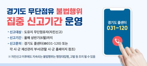 ÇÑÆí ¾çÁֽô ¿À´Â 6¿ù ¸»±îÁö µµÀ¯Áö ¹«´ÜÁ¡À¯ ÁýÁß ½Å°í±â°£À» ¿î¿µÇÏ¸ç °ü·Ã ºÒ¹ýÇàÀ§¸¦ ¹ß°ßÇßÀ» °æ¿ì¿¡´Â °æ±âµµ Äݼ¾ÅÍ(031-120)·Î ½Å°íÇÏ¸ç µÈ´Ù.