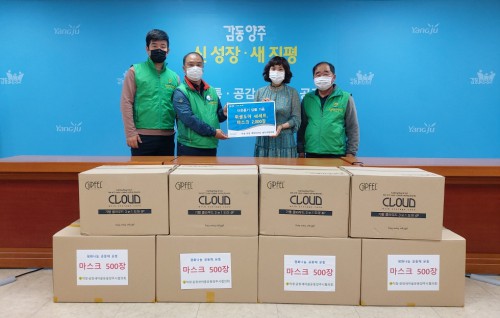 Á÷Àå·°øÀå »õ¸¶À»¿îµ¿ ¾çÁÖ½ÃÇùÀÇȸ(ȸÀå ¿À¼ö¿µ)´Â Áö³ 4ÀÏ ¾çÁÖ2µ¿ ÇàÁ¤º¹Áö¼¾Å͸¦ ã¾Æ À§»ýµµ¸¶ 40¼¼Æ®¿Í ¸¶½ºÅ© 2,000Àå(400¸¸¿ø »ó´ç)À» ±âŹÇß´Ù.