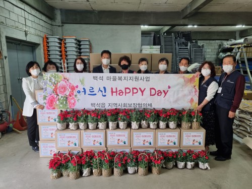 ¾çÁֽà ¹é¼®À¾ Áö¿ª»çȸº¸ÀåÇùÀÇü(°øµ¿À§¿øÀå ±è±æ¿µ)´Â Áö³ 6ÀÏ ¾î¹öÀ̳¯À» ¸Â¾Æ °ü³» Àú¼ÒµæÃþ ¾î¸£½Å 50°¡±¸¿¡ Ä«³×À̼ǰú ¼±¹°²Ù·¯¹Ì¸¦ Àü´ÞÇÏ´Â ‘¾î¸£½Å Happy Day’ Çà»ç¸¦ ½Ç½ÃÇß´Ù.