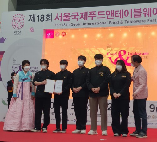 ¼Á¤´ëÇб³ (ÃÑÀå ¾ç¿µÈñ)´Â Áö³ 5¿ù8ÀÏ~5¿ù9ÀÏ ¾çÀ絿 aT¼¾ÅÍ¿¡¼ ¿¸° “2021 ´ëÇѹα¹ ¼¿ï±¹Á¦Çªµå¾Ø Å×À̺í¿þ¾î¹Ú¶÷ȸ”¿¡¼ È£ÅÚÁ¶¸®°ú Çлý ´Üü ¶óÀ̺êºÎ¹® 8ÆÀ(°¢ÆÀ 5¸í)ÀÌ ÃÑ 40¸íÀÌ Âü°¡ÇÏ¿© º¸°Çº¹ÁöºÎÀå°ü»ó1°³, ¼¿ïƯº°½ÃÀå»ó1°³, ´ë»ó 3°³, ±Ý¸Þ´Þ 7°³, 1ÆÀÀº Àº¸Þ´Þ 1°³¸¦ ¼ö»óÇÏ¿´´Ù.
