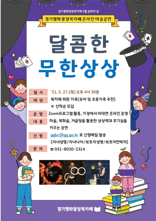 °æ±âµµÃ» ºÏºÎû»ç °æ±âÆòȱ¤Àå ºÏÄ«Æä´Â °¡Á¤ÀÇ ´Þ 5¿ùÀ» ¸Â¾Æ µµ¹Î°¡Á·À» ´ë»óÀ¸·Î ¸¶¼ú°ø¿¬ <´ÞÄÞÇÑ ¹«ÇÑ»ó»ó>À» ¿î¿µÇÑ´Ù.