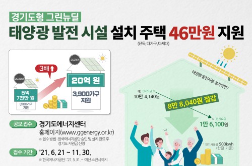 °æ±âµµ°¡ ÁÖÅà ÁöºØÀ̳ª ¿Á»ó¿¡ ž籤 ¹ßÀü±â¸¦ ¼³Ä¡Çϱâ·Î ÇÑ ´Üµ¶ÁÖÅà 3,900¿© °¡±¸¿¡ ¼³Ä¡ºñ 46¸¸ ¿øÀ» Áö¿øÇÑ´Ù. Çѱ¹¿¡³ÊÁö°ø´ÜÀÇ Áö¿ø±Ý°ú ½Ã․±ºº° º¸Á¶±ÝÀ» ¸ðµÎ ÇÕÄ¡¸é ÇØ´ç ÁÖ¹ÎÀº Àüü ¼³Ä¡ºñ 460¸¸ ¿ø Áß Æò±Õ 92¸¸ ¿øÀ» ºÎ´ãÇÏ¸é µÈ´Ù.