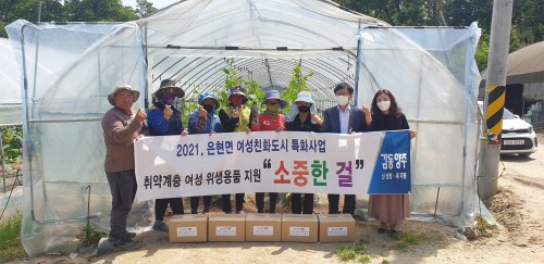 ¾çÁֽà ÀºÇö¸é(¸éÀå ¹ÚÈï¼ö)Àº Áö³ 24ÀÏ °ü³» ÀÌÁÖ¿©¼ºÀ» °í¿ëÇÑ ¿µ¼¼¾÷ü¸¦ ¹æ¹®ÇØ ÀÌÁÖ¿©¼º 5¸í¿¡°Ô ¿©¼ºÀ§»ý¿ëǰ(1ÀÎ 100¸Å)°ú ÆÄ¿ìÄ¡¸¦ Àü´ÞÇß´Ù.