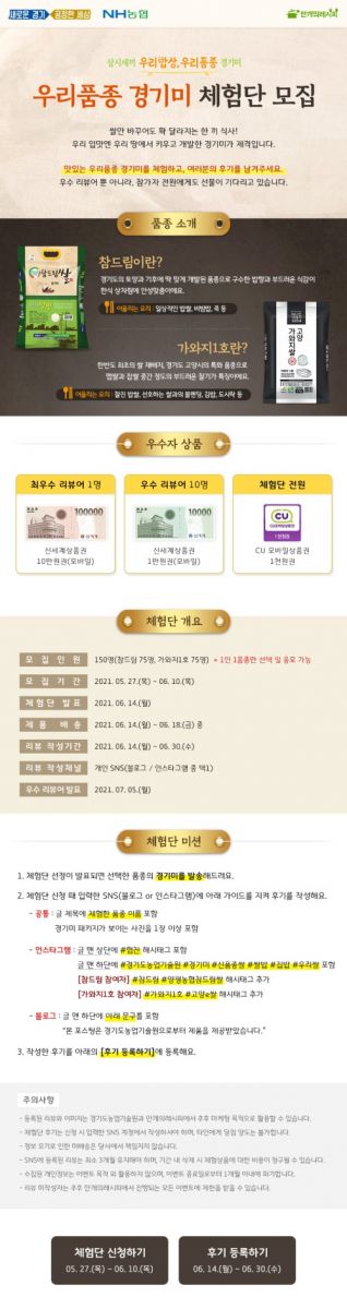 À̹ø üÇè´Ü Çà»ç´Â ³óÇù °æ±âÁö¿ªº»ºÎ°¡ ÇÔ²²ÇÏ¸ç ‘¸¼Àº°íÀ» ¾çÆò Âüµå¸²½Ò’(¾çÆò³óÇù)°ú ‘°í¾ç °¡¿ÍÁö½Ò’(°í¾ç½Ã½Ò¿¬±¸È¸)ÀÌ Á¦°øµÈ´Ù. üÇè´Ü ÃÖ¿ì¼ö ¸®ºä ÀÛ¼ºÀÚ 1¸í¿¡°Ô´Â »óǰ±Ç 10¸¸ ¿øÀÌ Á¦°øµÇ¸ç ¿ì¼ö ¸®ºä ÀÛ¼ºÀÚ 10¸í¿¡°Ô´Â »óǰ±Ç 1¸¸ ¿øÀÌ, üÇè´Ü Àü¿ø¿¡°Ô´Â ÆíÀÇÁ¡ »óǰ±ÇÀÌ Á¦°øµÈ´Ù.