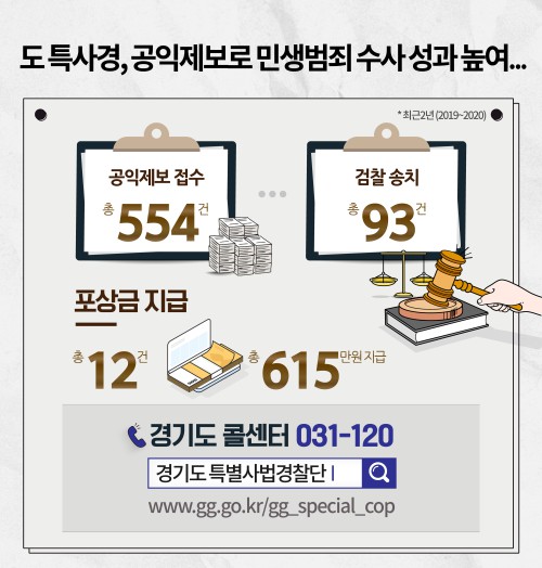 ¹Î»ýºÐ¾ß ºÒ¹ýÇàÀ§ Á¦º¸´Â °æ±âµµ Ư»ç°æ(www.gg.go.kr/gg_special_cop), °æ±âµµ Æ®À§ÅÍ(twitter.com/ggholic), ±¹¹Î½Å¹®°í(www.epeople.go.kr) ¹× °æ±âµµ °øÀÍÁ¦º¸ ÇÖ¶óÀÎ(hotline.gg.go.kr) µîÀ¸·Î °¡´ÉÇÏ´Ù.
