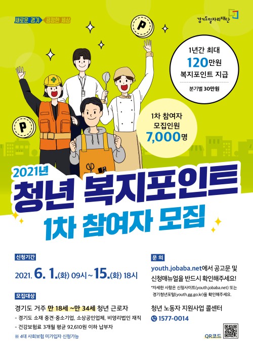 ‘û³â º¹ÁöÆ÷ÀÎÆ®’ »ç¾÷Àº °æ±âµµ ¼ÒÀç Áß¼Ò·Áß°ß±â¾÷, ¼Ò»ó°øÀξ÷ü, ºñ¿µ¸®¹ýÀο¡¼ ÁÖ 36½Ã°£ ÀÌ»ó ±Ù¹«ÇÏ´Â ÀçÁ÷ÀÚ Áß ¿ù ±Þ¿© 270¸¸¿ø ÀÌÇÏÀÎ ¸¸ 18~34¼¼ µµ³» °ÅÁÖ Ã»³âÀ» ´ë»óÀ¸·Î ¿¬°£ 120¸¸¿ø »ó´çÀÇ º¹ÁöÆ÷ÀÎÆ®¸¦ Áö±ÞÇÏ´Â ³»¿ëÀÌ´Ù. º´¿ªÀǹ« ÀÌÇàÀÚ´Â º´¿ª ±â°£¸¸Å ½Åû ¿¬·ÉÀÌ(ÃÖ°í ¸¸ 39¼¼) ¿¬ÀåµÈ´Ù.