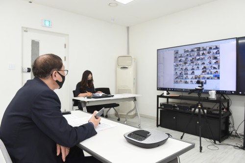 Á¶Çмö ºÎ½ÃÀå ÁÖÀçÇÏ¿¡ ¿¸° ÀÌ ³¯ º¸°íȸ´Â ½Ç±¹¼ÒÀåÀ» ºñ·ÔÇÑ Àü ºÎ¼ÀåÀÌ Âü¼®, Äڷγª19 Á¤ºÎ ¹æ¿ªÁöħ¿¡ µû¶ó ºñ´ë¸é ¿µ»óȸÀÇ·Î ÁøÇàÇß´Ù.