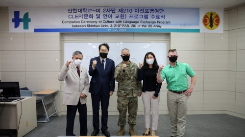 ½ÅÇÑ´ëÇб³(ÃÑÀå °¼ºÁ¾) ±¹Á¦±³·ùó´Â CLEP(Culture with Language Exchange Program between Shinhan Univ. and 2ID) ¹®È ¹× ¾ð¾î±³·ù ¿µ¾îÈ¸È ÇÁ·Î±×·¥ ¼ö·á½ÄÀ» 2021³â 6¿ù 1ÀÏ µ¿µÎõ Ä·ÆÛ½º º»°ü 1060È£¿¡¼ Á¤¿ì¿ë ±¹Á¦±³·ùóÀå, ¹Ì2»ç´Ü 210 ¾ßÀüÆ÷º´¿©´Ü °ü°èÀÚ ¹× ÇÁ·Î±×·¥ ¼ö·á Çлý(28¸í)ÀÌ Âü¼®ÇÑ °¡¿îµ¥ ¼ºÈ²¸®¿¡ °³ÃÖÇÏ¿´´Ù.