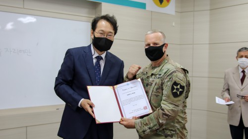 ½ÅÇÑ´ëÇб³ ±¹Á¦±³·ùó Á¤¿ì¿ë óÀåÀº ¼ö·á½Ä¿¡¼ µ¿ ÇÁ·Î±×·¥ÀÇ Á߿伺À» °Á¶ÇÏ°í ¹Ì2»ç´ÜÀÇ Áö¼ÓµÈ Áö¿ø°ú ¼ö°í¿¡ °¨»ç¸¦ Ç¥Çß´Ù. À̳¯ Âü¼®ÇÑ ¹Ì 2»ç´Ü Æ÷º´¿©´Ü ±×·£Æ® ½ºÅ¸Å© ¹Î»çÀå±³´Â “¾ÕÀ¸·Îµµ ÇÑ¹Ì °øµ¿ Çù·Â ÇÁ·Î±×·¥À» ÅëÇØ ¹Ì2»ç´Ü°ú ÇÔ²² Áö¿ª»çȸ ¹ßÀüÀ» À§ÇØ °°ÀÌ ÇÔ²² °¥ °Í(We go together)"À̶ó°í ÀüÇß´Ù.