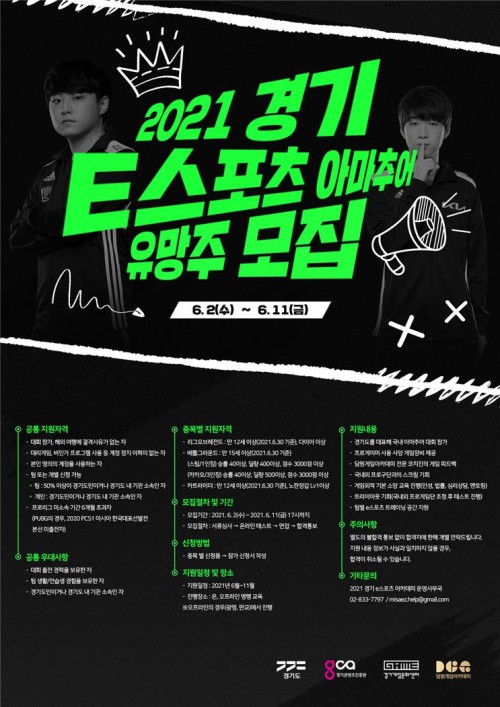 Âü°¡ÀÚ ¸ðÁý¿¡ °üÇÑ ÀÚ¼¼ÇÑ ¹®ÀÇ ¹× Áö¿ø ½ÅûÀº °æ±âÄÜÅÙÃ÷ÁøÈï¿ø °ÔÀÓ¹®ÈÆÀ(032-623-8057) ȤÀº ȨÆäÀÌÁö(www.gcon.or.kr/gcc)¿¡¼ ÇÒ ¼ö ÀÖ´Ù.