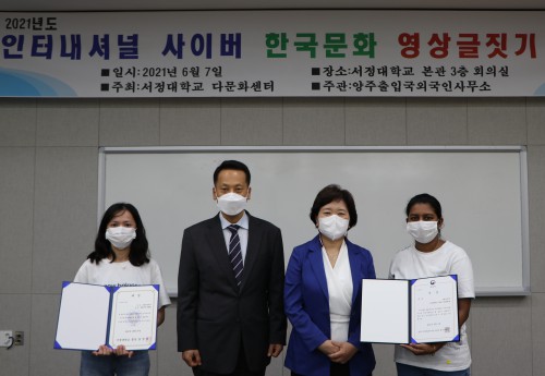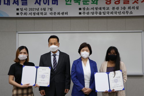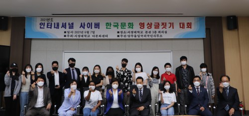 ¼Á¤´ëÇб³(ÃÑÀå ¾ç¿µÈñ)´Â 6¿ù 7ÀÏ ´ëȸÀǽǿ¡¼ 2021³â ÀÎÅͳ»¼Å³Î »çÀ̹ö Çѱ¹¹®È ¿µ»ó±ÛÁþ±â ´ëȸ¸¦ °³ÃÖÇÏ°í ½Ã»ó½ÄÀ» ÇÏ¿´´Ù. ¼Á¤´ëÇб³ ±¹Á¦±³·ùó¿Í ´Ù¹®ÈÁö¿ø¼¾ÅÍ¿¡¼ ÁÖÃÖÇÏ°í ¾çÁÖÃâÀÔ±¹·¿Ü±¹Àλ繫¼Ò(¼ÒÀå ȲÅÃȯ)°¡ ÁÖ°üÇÏ¸ç ´Ù¹®È¼¾ÅÍ Á¶°æÀÚ ±³¼ö°¡ Áöµµ¿Í »çȸ¸¦ ¸Ã¾Ò´Ù.