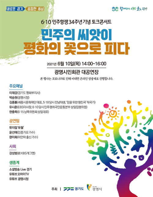 °æ±âµµ°¡ ±¤¸í½Ã¿Í °øµ¿ÁÖÃÖÇÏ´Â À̹ø ÅäÅ©ÄܼƮ´Â ‘5·18 ¹ÎÁÖÈ ¿îµ¿→6·10 ¹ÎÁÖÇ×Àï→6·15 ³²ºÏÁ¤»óȸ´ã’À¸·Î À̾îÁö´Â ¿ª»çÀû È帧À» µÇ»õ±â°í, ¿ì¸®³ª¶ó ¹ÎÁÖÈ ¿îµ¿À» ¿¬»óÄÉ ÇÏ´Â ¹Ì¾á¸¶ÀÇ Æòȸ¦ ±â¿øÇÏ¸ç µµ¹ÎÀÇ ÆòȰø°¨´ë È®»êÀ» À§ÇØ ¸¶·ÃµÈ Çà»çÀÌ´Ù.