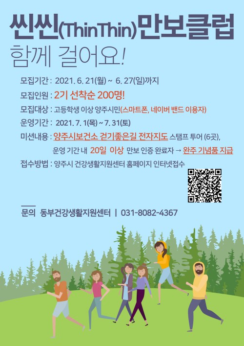 ¾çÁֽà °Ç°»ýȰÁö¿ø¼¾ÅÍ´Â ¿À´Â 21ÀϺÎÅÍ 27ÀϱîÁö ¾ÈÀüÇϰí ÄèÀûÇÑ ‘¿öÅ·365 °Ç°ÇÏ°Ô °È´Â µµ½Ã’ ȯ°æ Á¶¼ºÀ» À§ÇØ ‘¾À¾À(ThinThin) ¸¸º¸Å¬·´ 2±â’ Âü°¡ÀÚ¸¦ ¸ðÁýÇÑ´Ù.