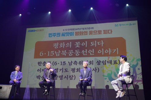 ÀÌÀç° °æ±âµµ ÆòȺÎÁö»ç°¡ 10ÀÏ ¿ÀÈÄ ±¤¸í½Ã¹Îȸ°ü¿¡¼ ¿¸° 6·10 ¹ÎÁÖÇ×Àï 34Áֳ⠱â³ä ÅäÅ©ÄܼƮ '¹ÎÁÖÀÇ ¾¾¾ÑÀÌ ÆòÈÀÇ ²ÉÀ¸·Î ÇÇ´Ù'¿¡¼ °æ±âµµ°¡ 5·18°ú 6·10, 6·15ÀÇ Á¤½ÅÀ» °è½ÂÇØ ¹ÎÁÖ¿Í ÆòÈ ¹ßÀüÀ» À§ÇØ Àû±Ø ³ë·ÂÇϰڴٴ °ÇÑ ÀÇÁö¸¦ ¹àÇû´Ù.