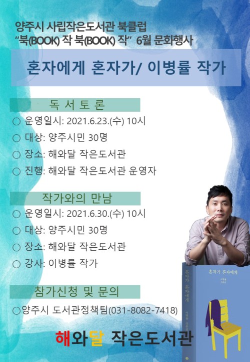 ¾çÁÖ½Ã(½ÃÀå À̼ºÈ£)´Â 6¿ù ‘ºÏ(BOOK)ÀÛ ºÏ(BOOK)ÀÛ ºÏŬ·´’À¸·Î ¹é¼®À¾ ÇØ¿Í´Þ ÀÛÀºµµ¼°ü¿¡¼ ‘À̺´·ü ÀÛ°¡¿ÍÀÇ ¸¸³²’À» ÁøÇàÇÑ´Ù.