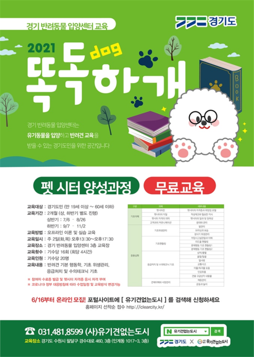 À̹ø ¾ç¼º°úÁ¤ Âü¿©¸¦ Èñ¸ÁÇÏ´Â ±³À°»ýÀº ‘°æ±âµµ ¹Ý·Áµ¿¹°ÀԾ缾ÅÍ’ °ø½Ä ȨÆäÀÌÁö(cafe.naver.com/ggpetadoptioncenter) ¶Ç´Â ‘À¯±â°ß¾ø´Âµµ½Ã’ °ø½Ä ȨÆäÀÌÁö(www.clearcity.kr)¿¡¼ ½Åû ÇÒ ¼ö ÀÖ´Ù. ÇöÀç 6¿ù 16ÀϺÎÅÍ ¼±Âø¼ø ¸ðÁý¿¡ µé¾î°£ »óÅ´Ù.