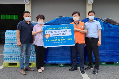 ¾çÁÖ½ÃÀÚ¿øºÀ»ç¼¾ÅÍ(¼¾ÅÍÀå ¹ÚÁ¾¼º)Àº Áö³ 22ÀÏ ¢ß°í·ÁÁø°ø¾ÈÀü(´ëÇ¥ ±è±¤ÀÚ)¿¡¼ ´Ù°¡¿À´Â ¿©¸§À» ¸Â¾Æ ¹«´õÀ§ Ãë¾à°èÃþÀ» À§ÇÑ »ý¼ö 500§¢ 22,400°³¸¦ ±âºÎÇß´Ù°í ¹àÇû´Ù.