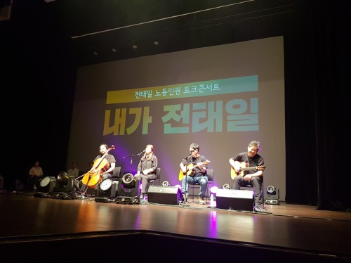 Çà»ç´Â À̼öÈ£ ÀüÅÂÀÏÀç´Ü ÀÌ»çÀå, ÃÖºÀÇö ¹ÎÁÖ¿¬ÇÕ³ëÁ¶ ¾È¾çÁöºÎ ºÎÁöºÎÀå, ÀÓ»óÇõ ³ì»öº´¿ø ¿øÀå, °¡¼ö Çϸ² µîÀÌ Âü¿©, À½¾Ç°ø¿¬ÀÌ ¾î¿ì·¯Áø °¡¿îµ¥ 1ºÎ<°ø°¨>, 2ºÎ<ÇÔ²²>·Î ³ª´² ÀüÅÂÀÏ ¿»çÀÇ »ý¾Ö¿Í Èñ»ý, ³ëµ¿ÀαÇ, ³ëµ¿Çö½Ç µî¿¡ ´ëÇØ À̾߱âÇÏ´Â ¹æ½ÄÀ¸·Î ÁøÇàµÆ´Ù.