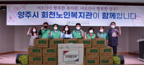 °øÀå»õ¸¶À»¿îµ¿¾çÁÖ½ÃÇùÀÇȸ(ȸÀå ¿À¼ö¿µ)´Â 7¿ù 1ÀÏ ¾çÁֽà ȸõ³ëÀκ¹Áö°ü ´ë°´ç¿¡¼ ¾çÁֽà ȸõ³ëÀκ¹Áö°ü(°üÀå ÁÖ¹ÎÁ¤)¿¡ ´çÀÏ »õº®ºÎÅÍ È¸¿øµé°ú Á÷Á¢ ¼öÈ®ÇÑ °¨ÀÚ 200KG¸¦ Àü´ÞÇß´Ù.