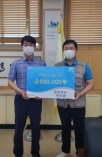 ¾çÁֽà °í¾Ïµ¿ ¼ÒÀç õ¿îÀ幦 ÄÁ¼³ÆÃ(´ëÇ¥ ÇÑÀǹü)Àº Áö³ 19ÀÏ ³²¸é ÇàÁ¤º¹Áö¼¾Å͸¦ ¹æ¹®ÇØ Àú¼Òµæ ¼Ò¿Ü°èÃþÀ» À§ÇØ ½á´Þ¶ó¸ç ¼º±Ý 50¸¸¿øÀ» Àü´ÞÇß´Ù.