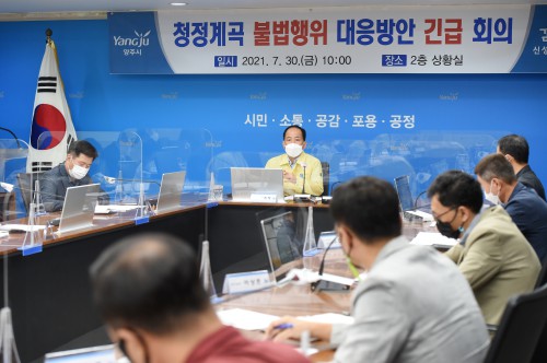 ¾çÁÖ½Ã(½ÃÀå À̼ºÈ£)´Â 30ÀÏ ½Ãû »óȲ½Ç¿¡¼ ÀåÈï ûÁ¤°è°î ºÒ¹ýÇàÀ§ ´ëÀÀ¹æ¾È ±ä±ÞȸÀǸ¦ °³ÃÖÇß´Ù.