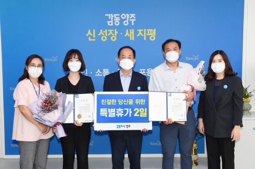 ¾çÁÖ½Ã(½ÃÀå À̼ºÈ£)´Â Áö³ 6ÀÏ ½Å¼ÓÇϰí Ä£ÀýÇÑ ¼ºñ½º·Î ¸íǰÇàÁ¤À» ºû³½ 2021³â 2ºÐ±â ģö°ø¹«¿ø 3¸íÀ» ¼±¹ßÇß´Ù°í ¹àÇû´Ù.